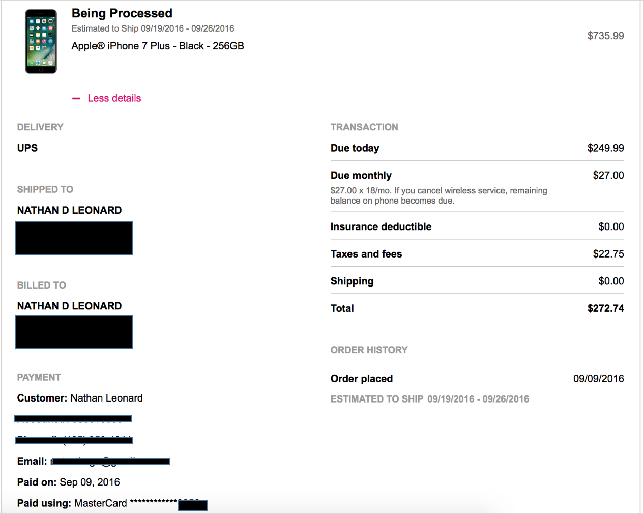 I got the shaft yesterday... I saw a report stating T-Mobile's trade in offer for iPhone 6 / 6s will end this Sunday 9/25/16. So I was just double checking because I had a weird feeling I wasnt setup to receive this offer. First give away was that when I tried to track my order online it didnt have any information or wouldnt populate. Second was I still technically had the Note 7 when I preordered the iPhone 7+. So they automatically assumed I would be returning the Note 7 and upgrading to the iPhone 7+. Which is true but I had an iPhone 6+ that is unlocked / out of contract. So since I didnt specify online I wasnt setup for the offer. So long story short, I had to cancel my preorder for my iPhone 7+ 256GB Matte Black that I preordered on 9/9/16 and had a ship date range of 9/19/16 - 9/26/16 3 days away from my ship date