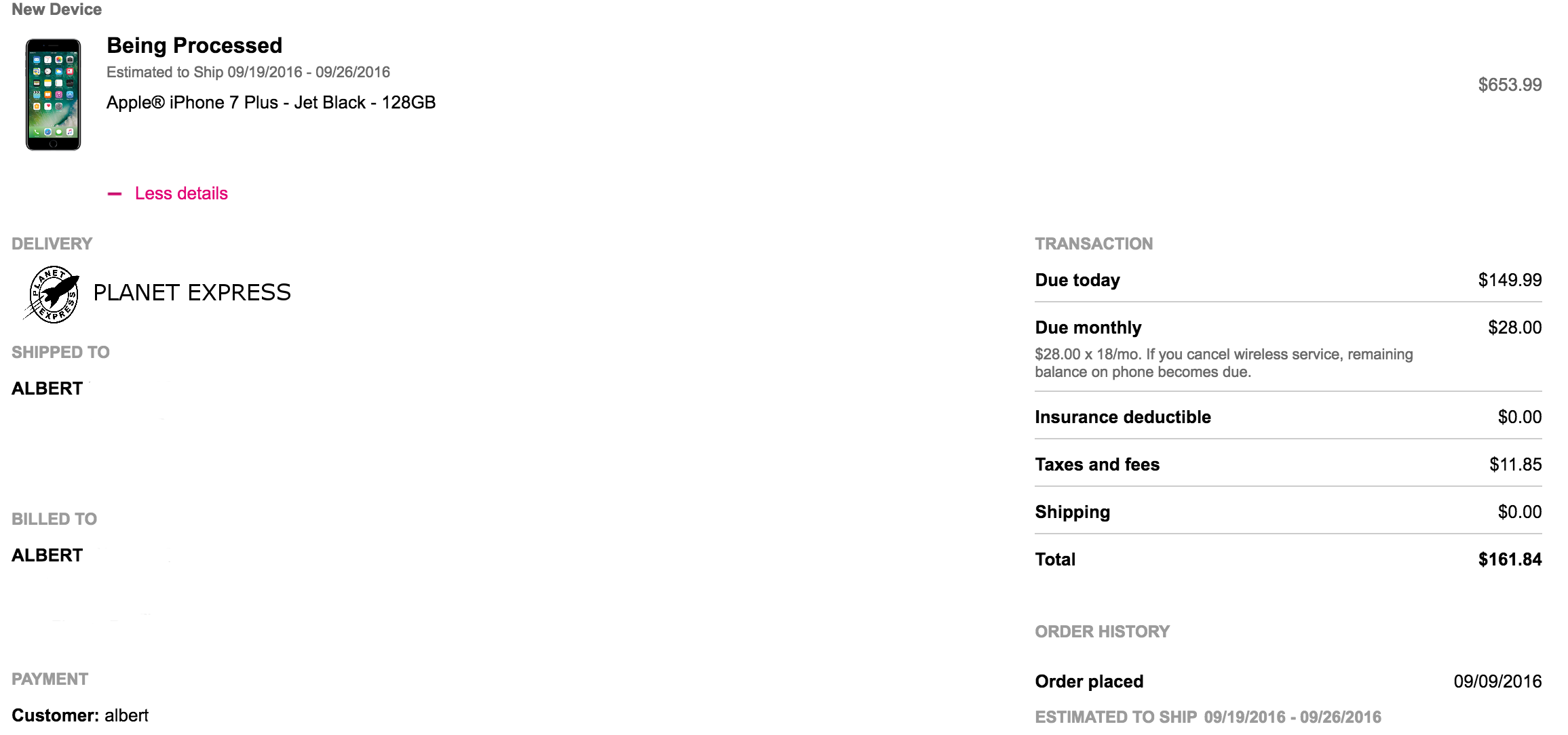 changed to UPS next day......128gb black 7+ 9/27-10/10.......waiting on that charge