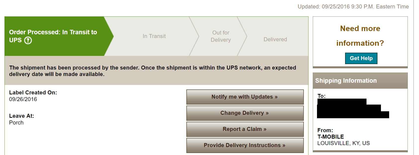 So, I haven't received a text or email from TMobile or UPS yet, but I logged into my UPS My Choice and found this.