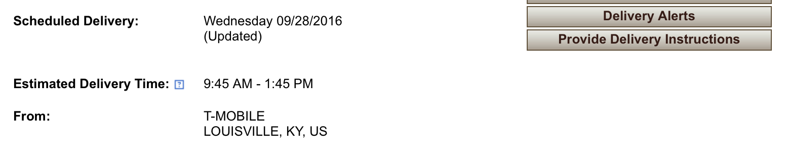 Label created and Ready for UPS on the 27th (no updates showing on tmobile or UPS MyChoice apps)