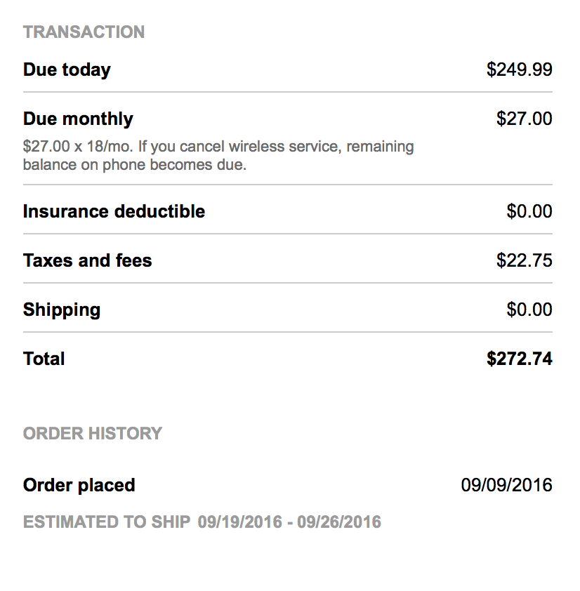 The first one I ordered on Friday night (9/9) at ~11pm and the rest I ordered 2-3 hours later on 9/10 at ~ 1-2AM. It looks like they charged the first 7+ as soon a I ordered it. Two of the 7s were charged 9/10 and the other on 9/11. I still haven't been charged for two of the 7+s. They were all ordered on the EIP as upgrades. None of the lines had Jump or Jump on Demand.