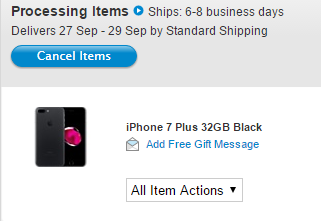 Same here for the 256 JB 7+.I ordered Jet Black 128gb 7+ at 8.02am on the dot on 9/9 and have a 26/9 - 3/10 delivery date. Still processing...don't think this will change anytime soon.