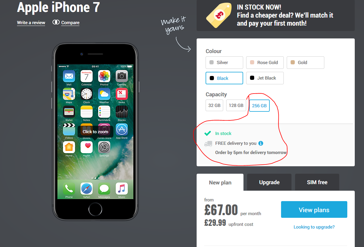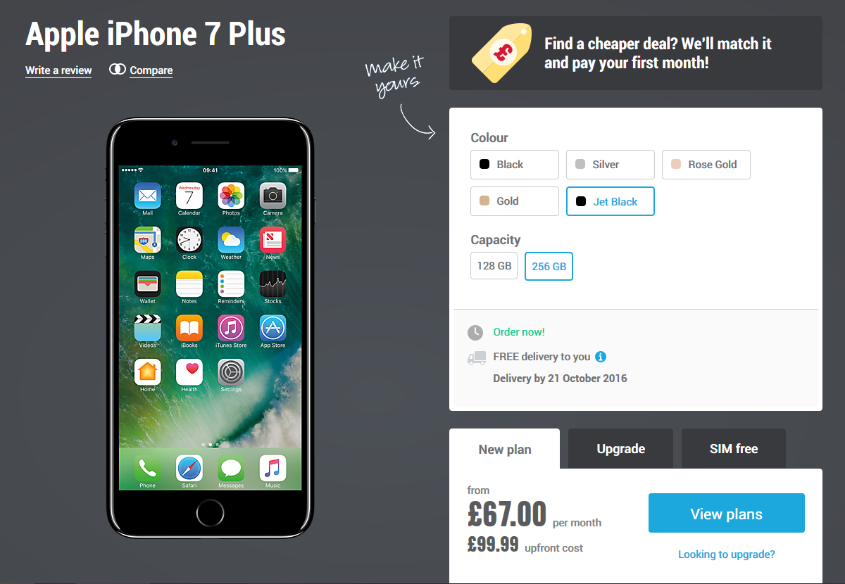 ...both 128gb and 256gb for iPhone 7+ though, are later in October: