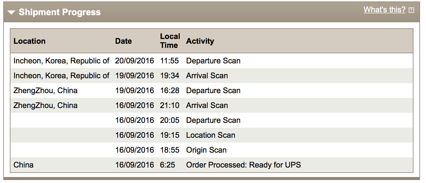 Come on UPS. By my calculations the plane should be arriving this afternoon in London.