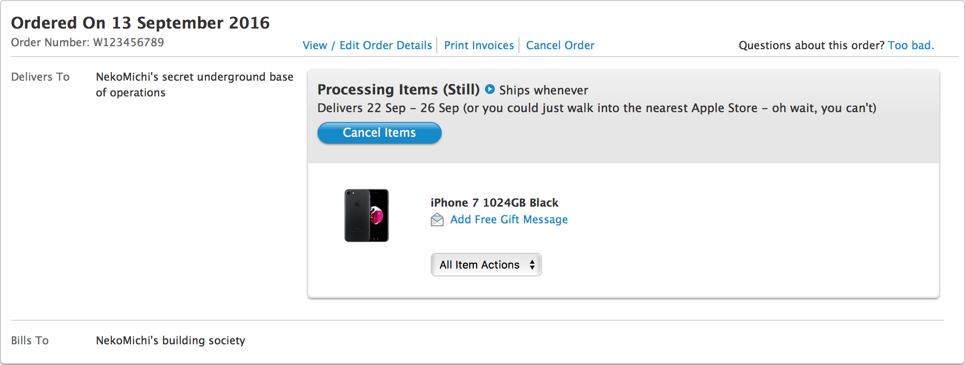 Order status page (or rather, what it feels like)