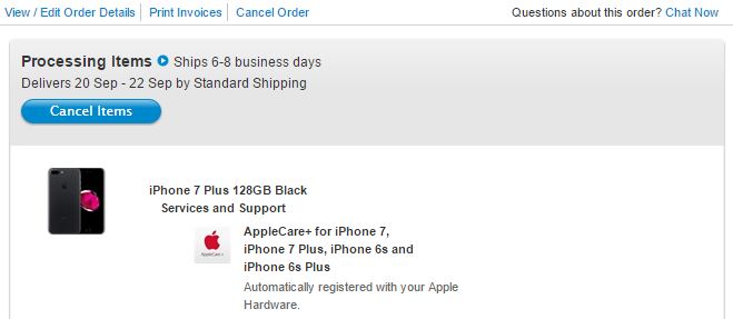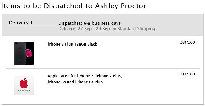 I got on the app at just after 8:01 and at the point my choice of 7+ 128gb Black was showing for delivery 16th Sept, however by the time I had entered my work address for delivery, the dates had slipped - confirmation email arrived at 08:09am. The delivery date slipping as i was ordering wound me up no end - surely the system should hold stock as you're progressing through the checkout process!!
