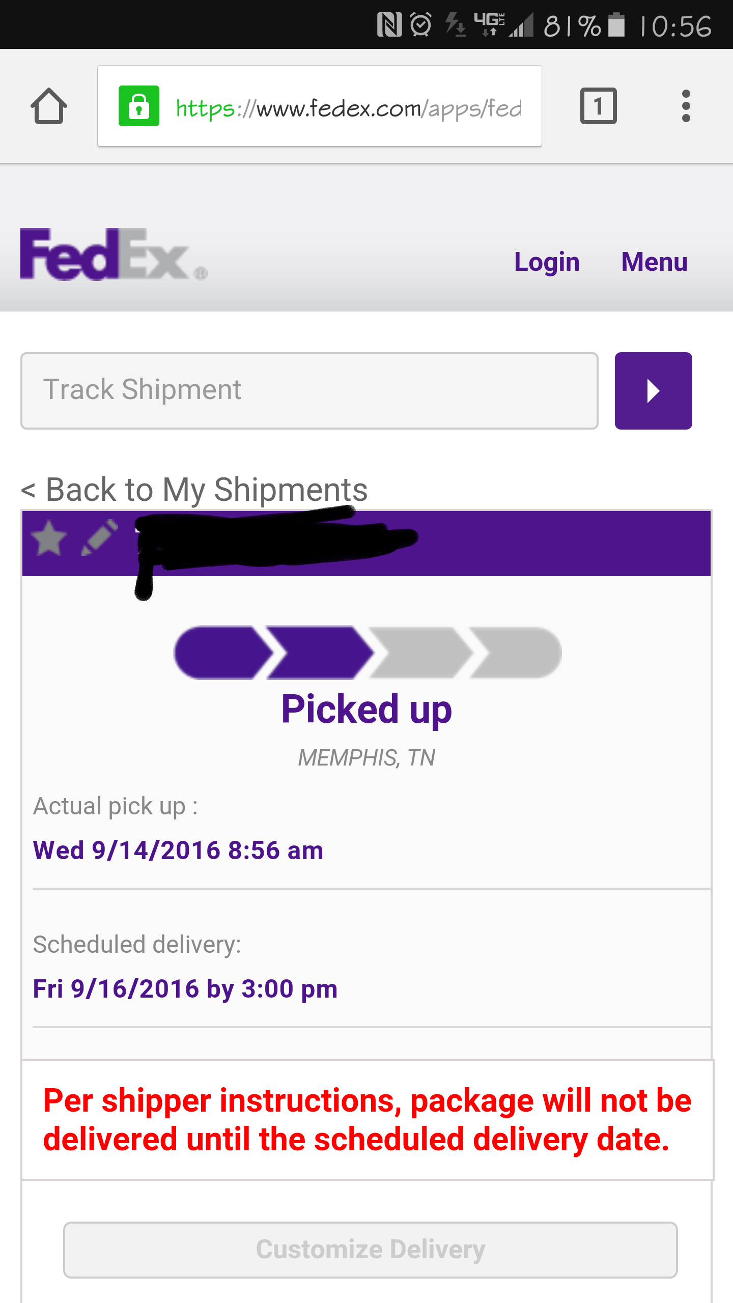Hi guys, just made account and have been following a couple days. I ordered a 7 32GB rose gold. It shipped on Sunday and has been sitting at the fed ex facility in Memphis since then with no movement. I live in the Chicago area just wondering if it's going to move closer at all before Friday or if it's getting directly overnighted from Memphis to me, any ideas? Kinda annoying knowing it's just sitting there lol