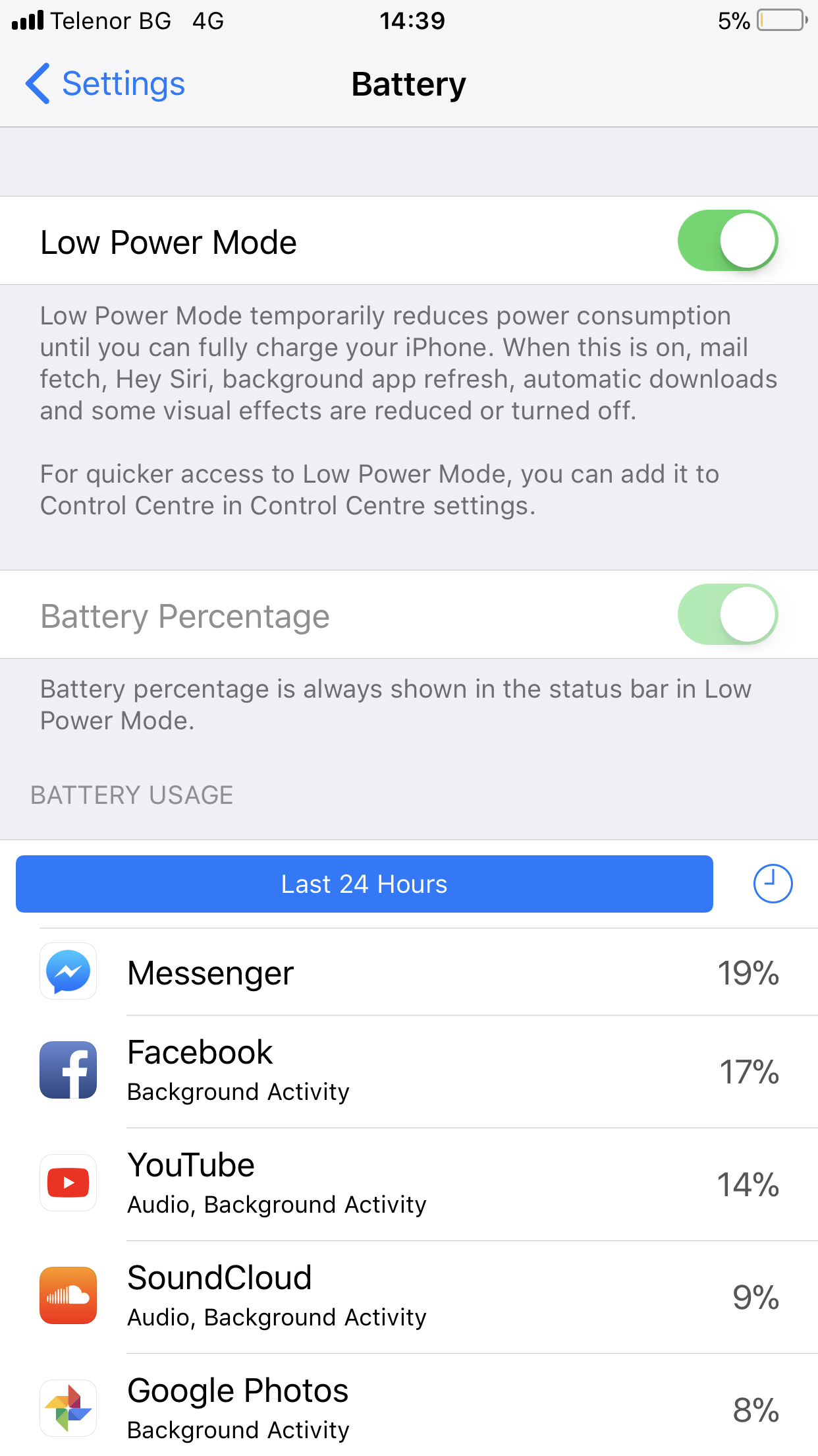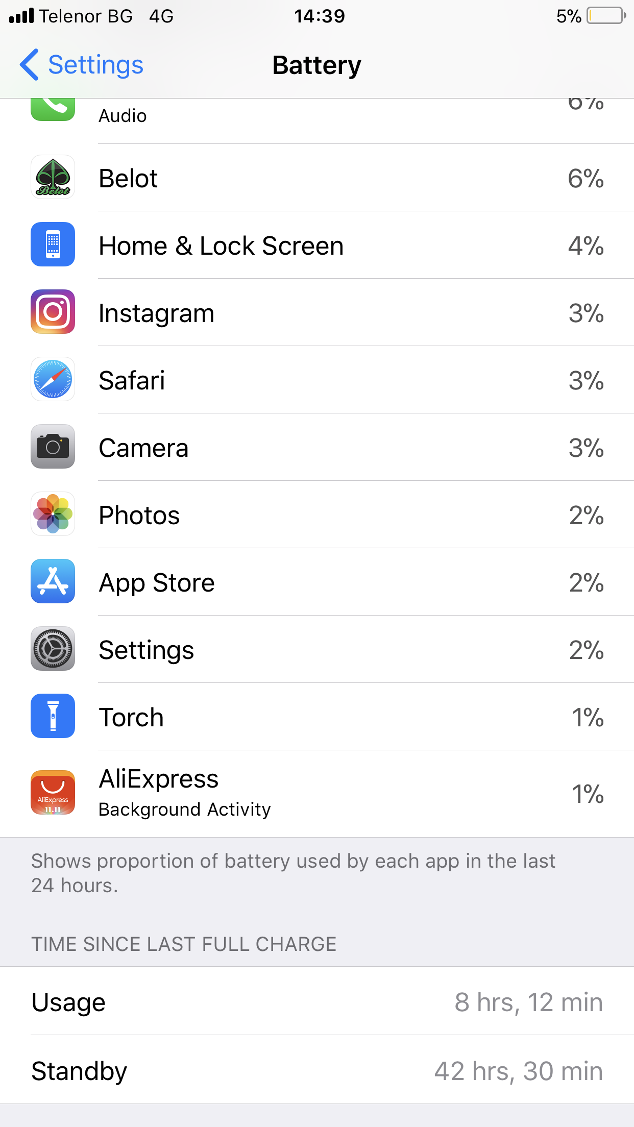 This is happening even with Low Power mode turned on, and even leaving the phone on Airplane Mode all night. The battery drops to the same ~75-80% level after 8h of standby and 0 minutes of usage. I get the battery at a 10% level after around 3h of usage time.