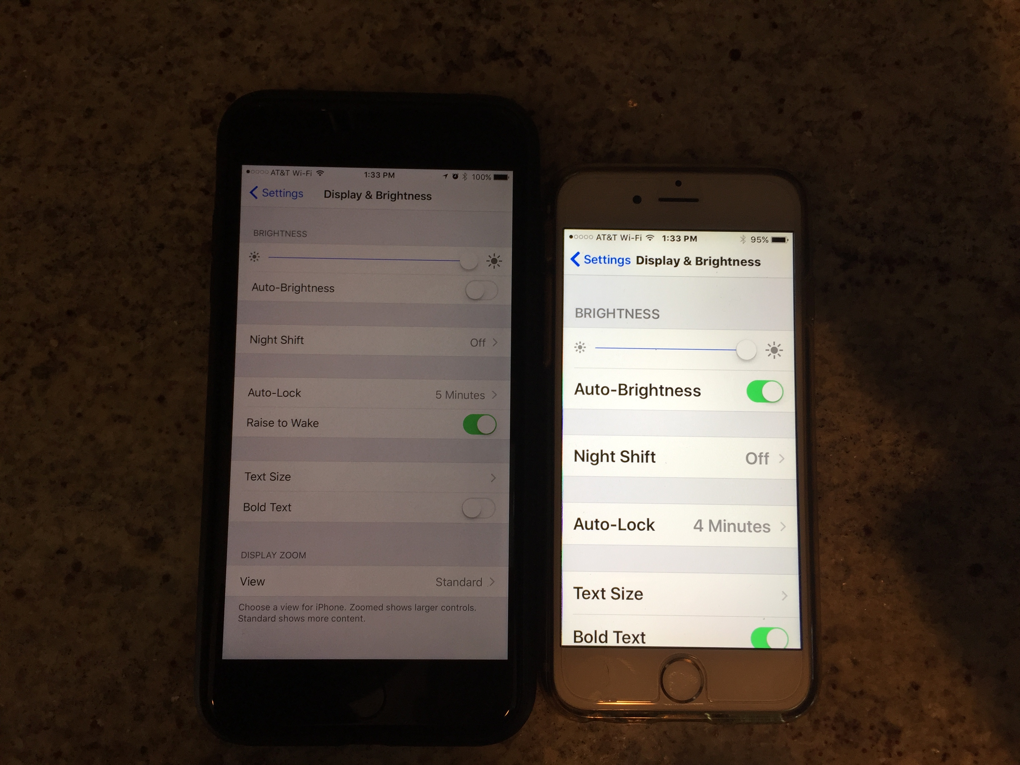 I read somewhere that to achieve iphone 7 maximum brightness you need to choose auto brightness, then when you go outside the screen should adjust automatically. If it doesn't work then take it back.View attachment 659551 I have posted about various yellowing and noise from my iPhone. Today I noticed a reoccuring problem with my brightness. My iPhone 7 Plus is a tint yellow and has this brightness problem pictured bellow with similar settings to an iPhone 6 (auto-brightness is on for the 6, but it hasn't seemed to matter. The brightness seems to be stuck at a low setting even with auto brightness off and full brightness setting on the 7+. Look at the difference. The 6 isn't even at full brightness. I did a hard reset on the 7 Plus, but it's the exact same.
