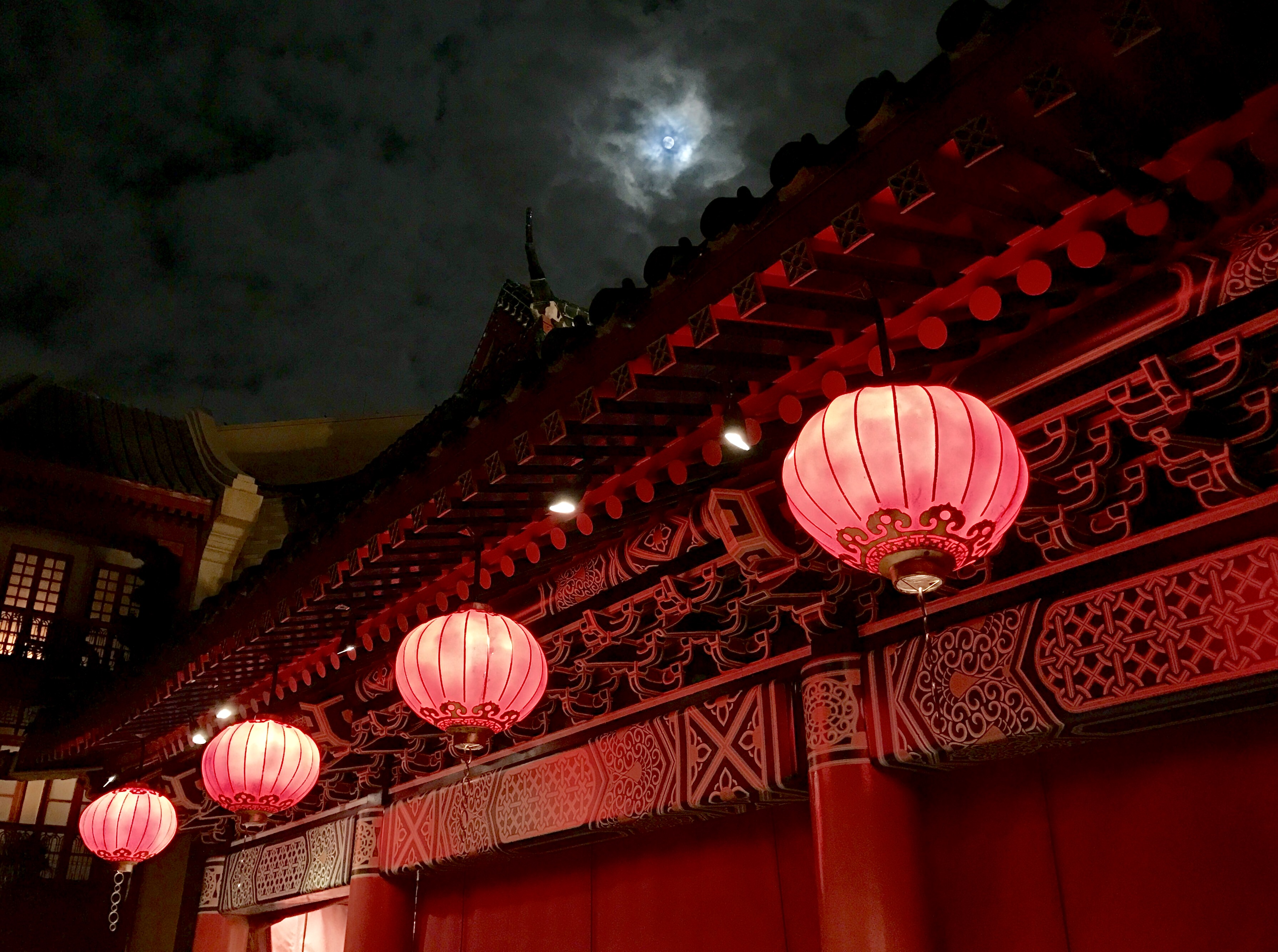 China at night at the world showcase in Epcot Disney world.