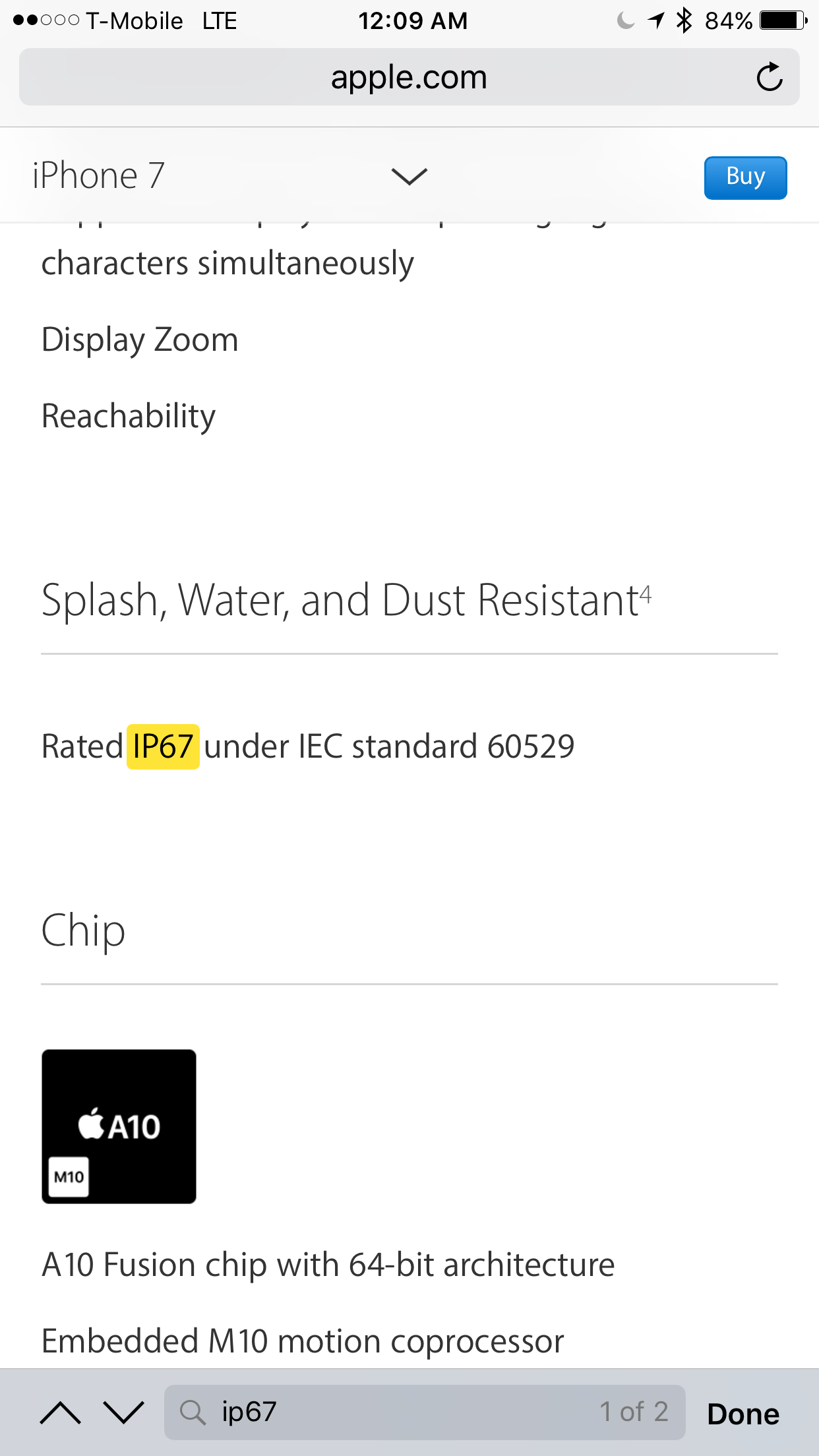 Great. I believe you and that you're far better versed in this than I am. Then my issue is with marketing. As I feel like people are led to believe this thing is far better than it actually is at keeping water out.I've read the NEMA paper several times and am very familiar with the standards. Apple only claims water resistance and that only requires UP to 1M of STANDING water. The words are very literal here.