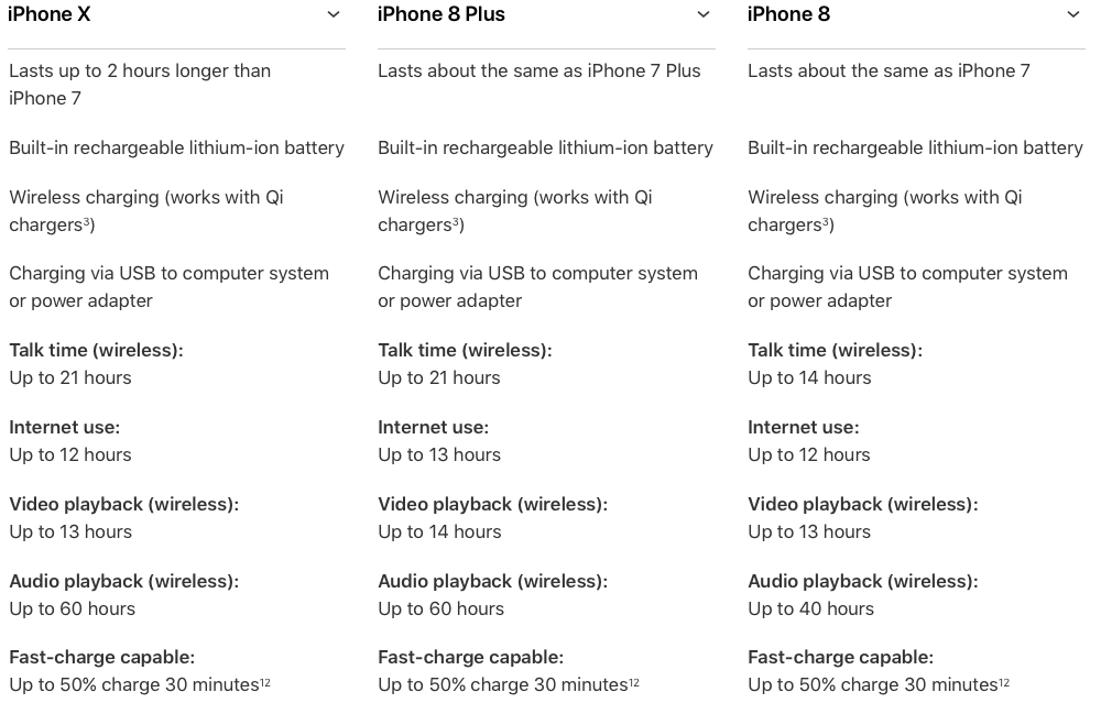 - 2 hours more battery life than 7 (and 8? right?)... which translates to 21 hours (for X) vs 14 hours (for 8).. which is actually 7 hours more battery life in a small form factor