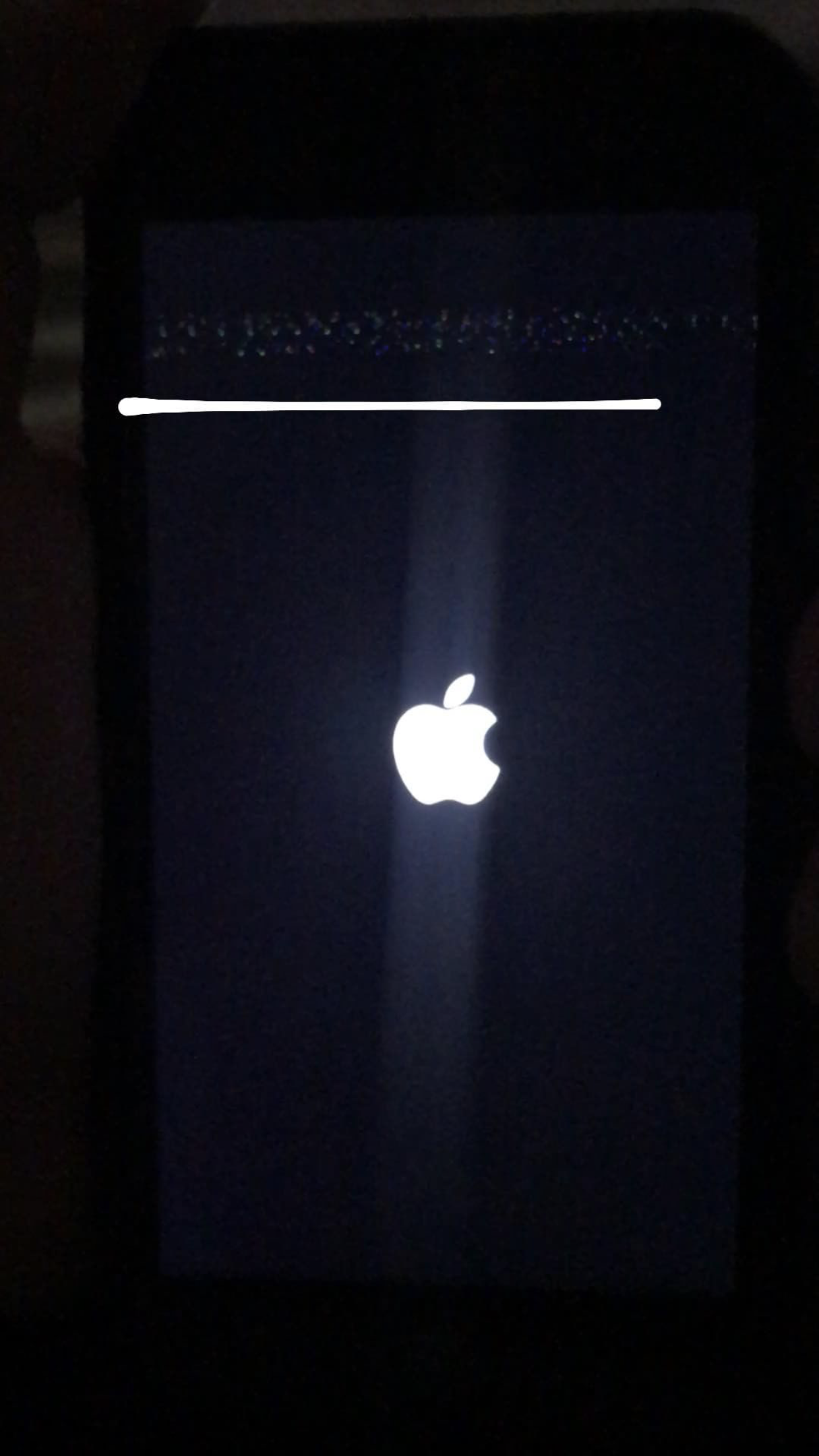 This happens on the boot up screen. So, the screen is black with the white apple in the middle. The screen jitters a bit and a grayish line quickly jumps across the bottom of the screen while the phone is booting up.