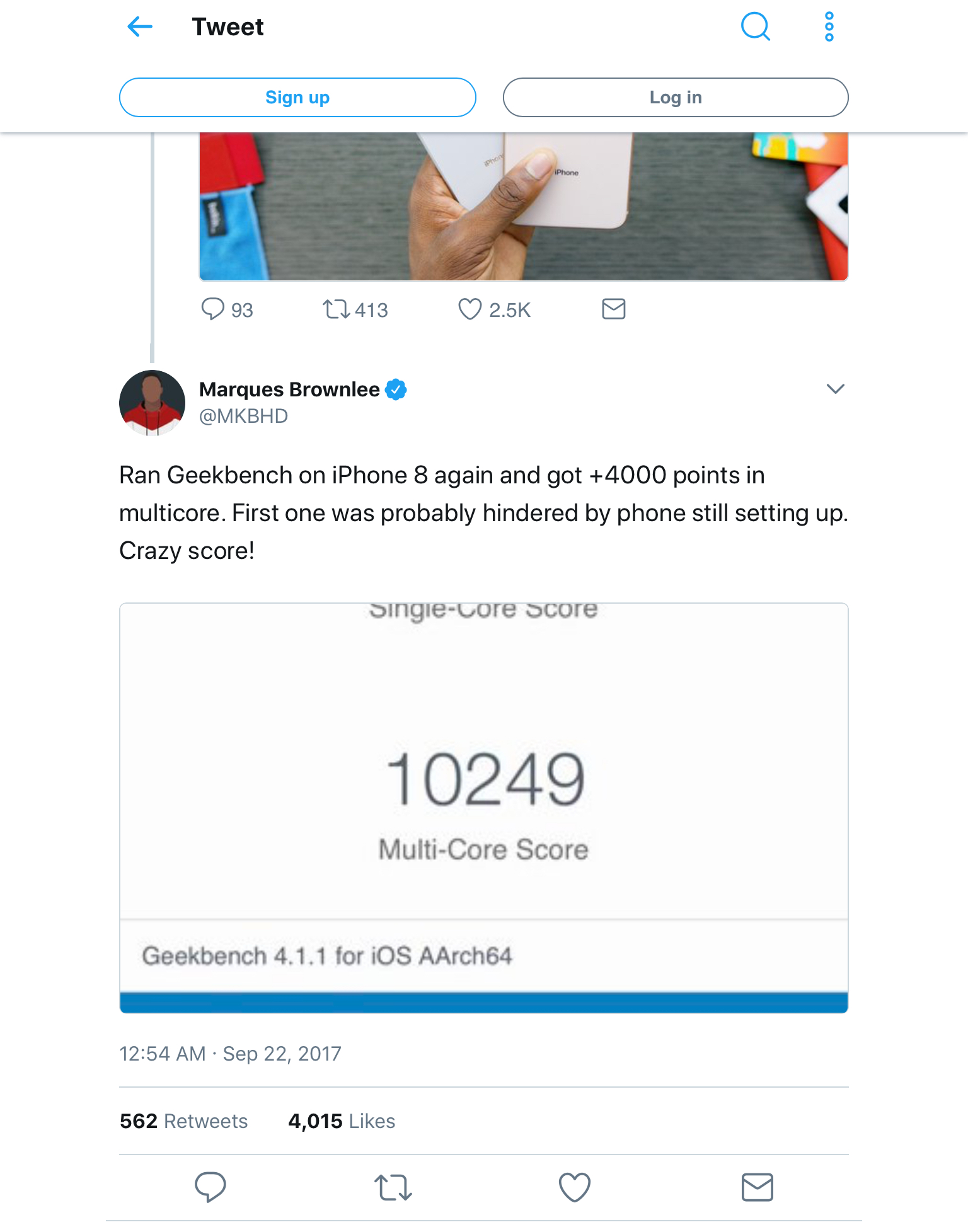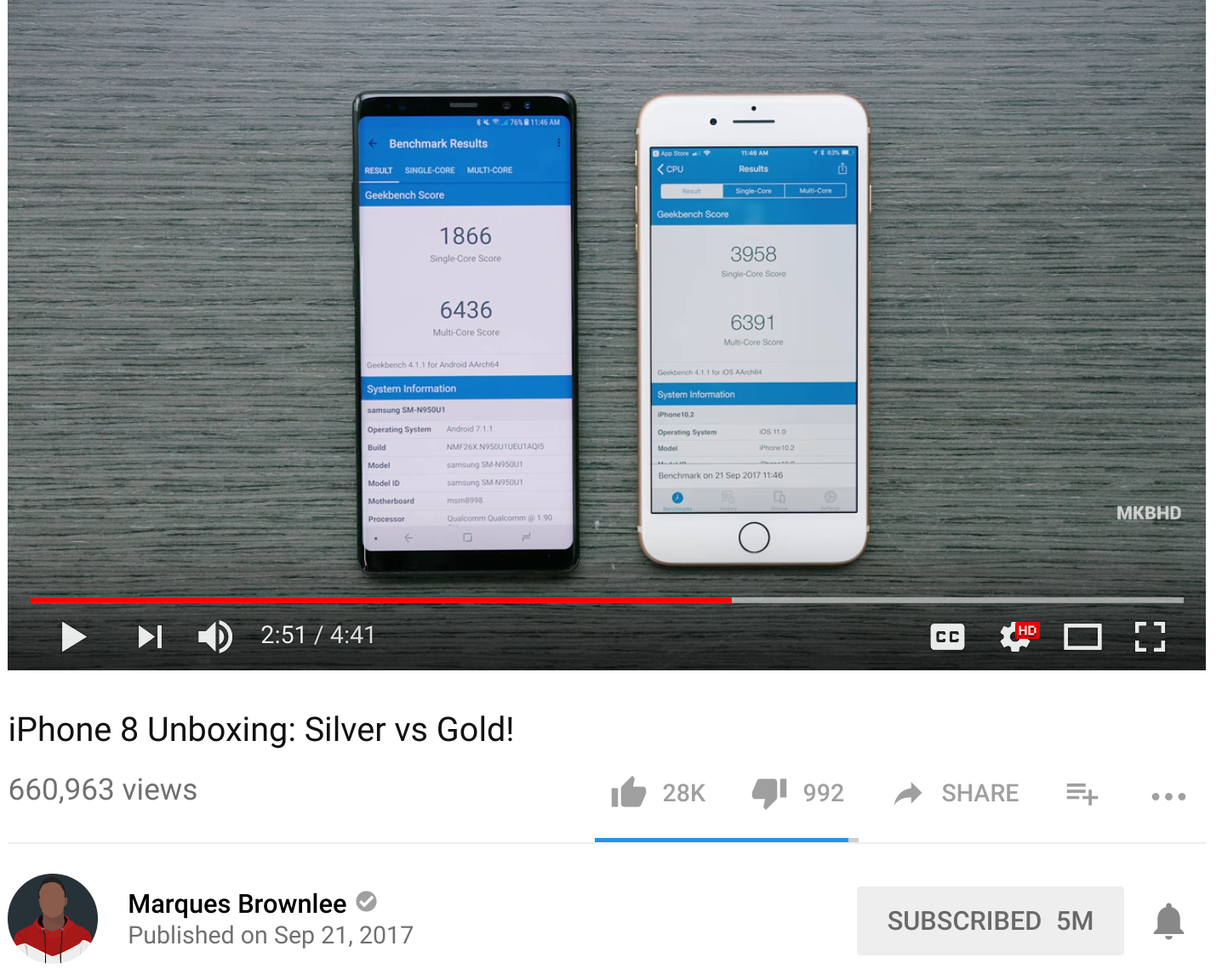 Hmm just wondering if Apple is falsifying their multi-core cpu performance or if Apple is paying off Geekbench. I'm sure the more efficient cores are being used more than the high performance ones or vice versa. I know that all six cores can work at once but that has to be seldomly. MKBHD wouldn't have gotten this result if not.