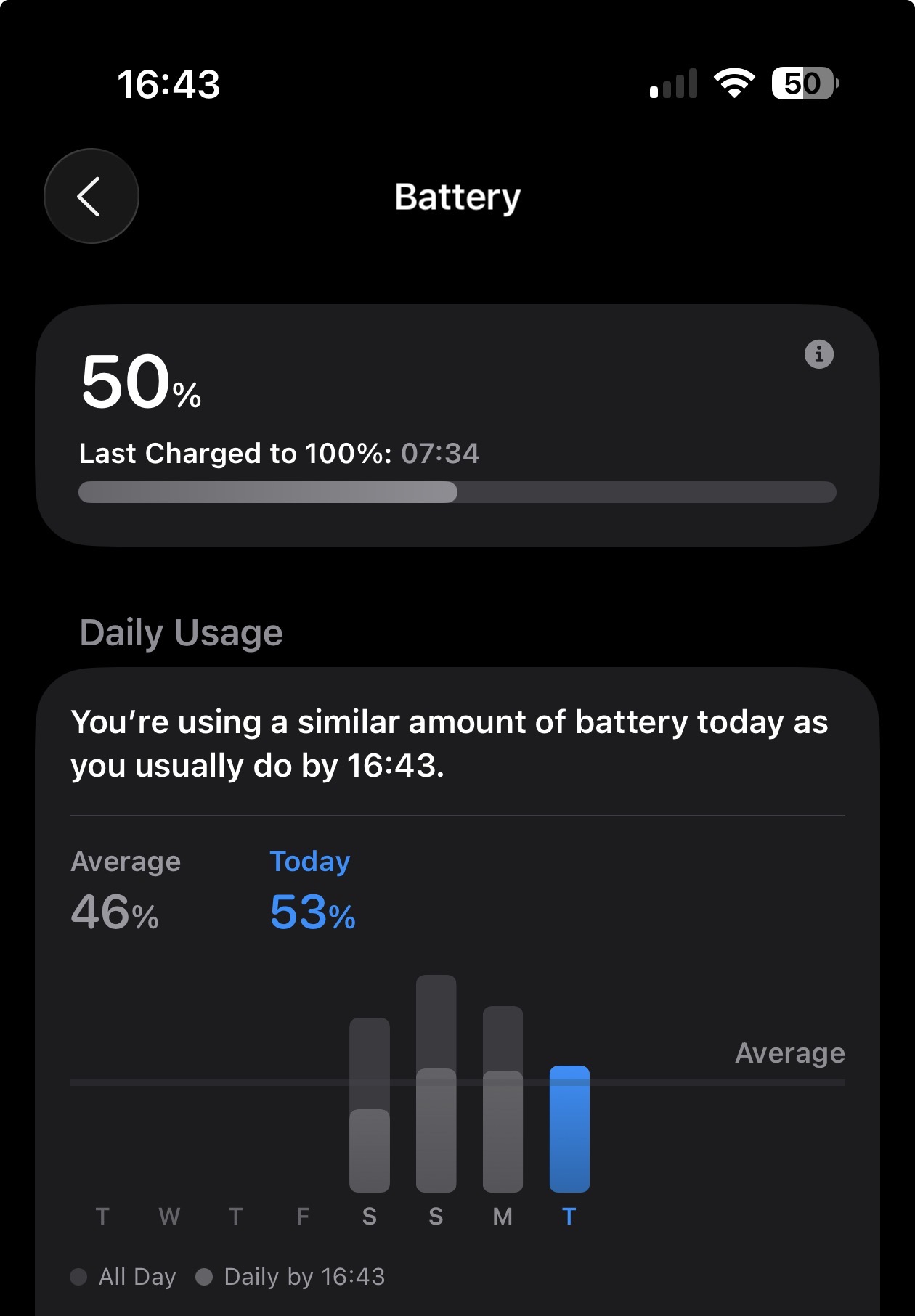 That gives you an average of 7 mins per percentage point. Extrapolating: with the 16e you were getting about 12.5 hours of SOT 100-0%.