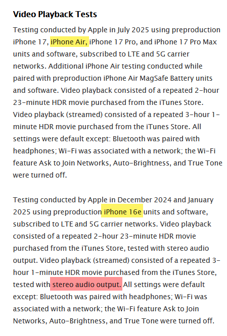 I was 90% sold on the Air before it was even announced just because I don't need Pro-level power or cameras and wanted the thinnest and lightest phone possible. However, rumors about the battery life were giving me pause. That pause vanished once I checked out the battery comparisons on Apple's website, which went live just now.
