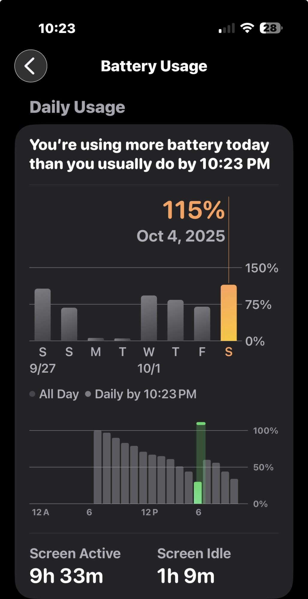Battery life- seems like plenty for my daily usage. My 16PM is way over the top. The only times I need a lot of battery are when attending events or visiting places where I need to take lots of pictures/video or use maps/navigation, but these instances are very occasional and predictable so I can always bring a MagSafe battery along.