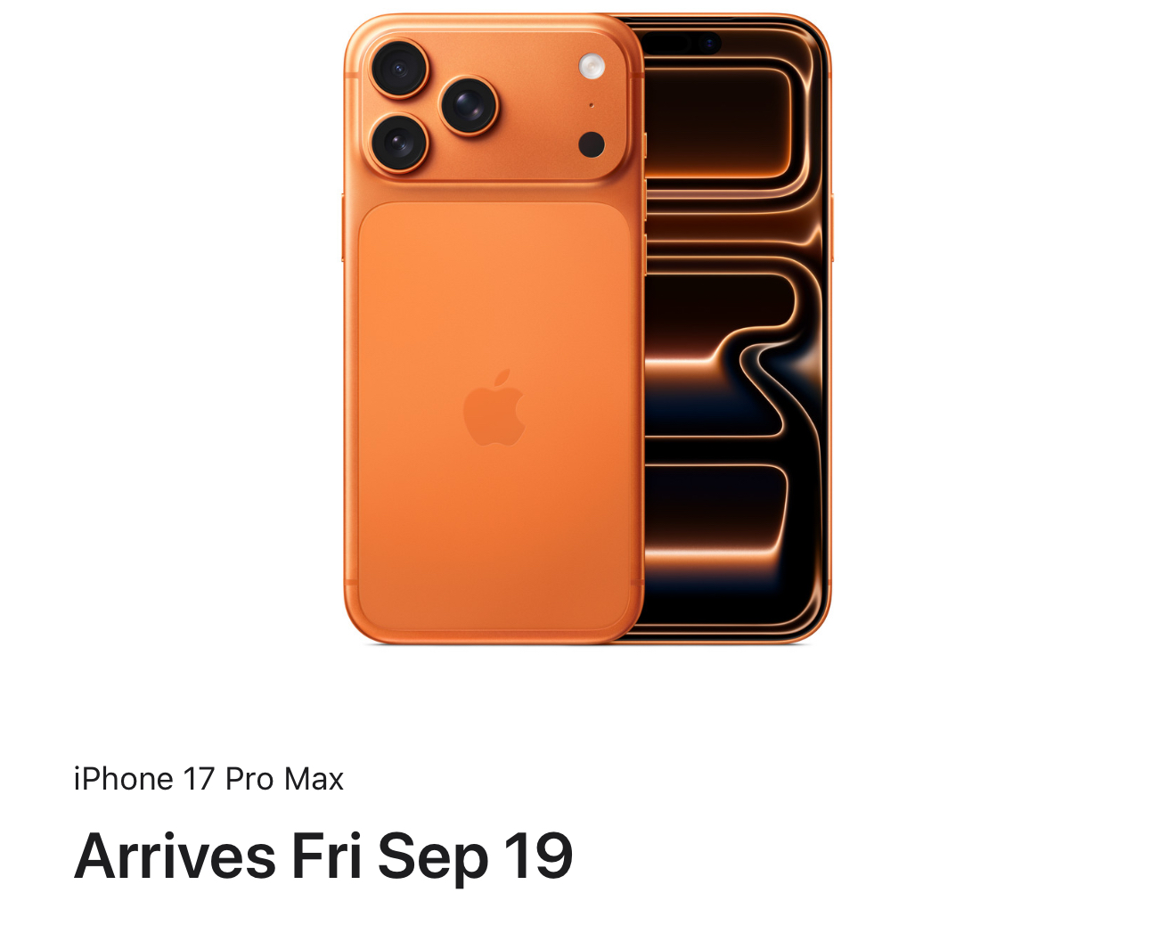 Let me check mine right now: Nope, mine still says 9/25 (at least I got an In-store pick up order ready to go as well on 9/20/25):Update- now changed from 9/25 to 9/19. (17 Pro 1TB orange).