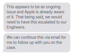 Apple Senior Advisor told me "This appears to be an ongoing issue and Apple is already aware of it. That being said, we would need to have this escalated to our Engineers. "
