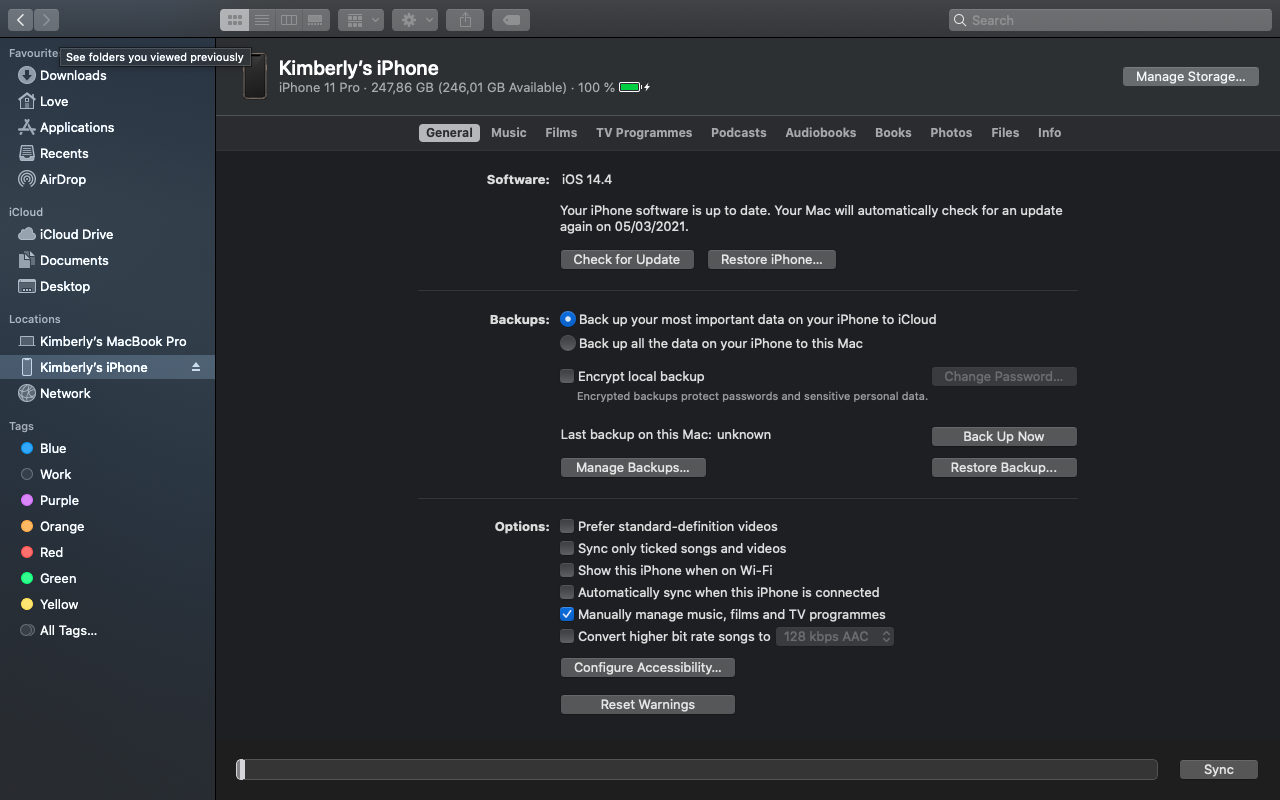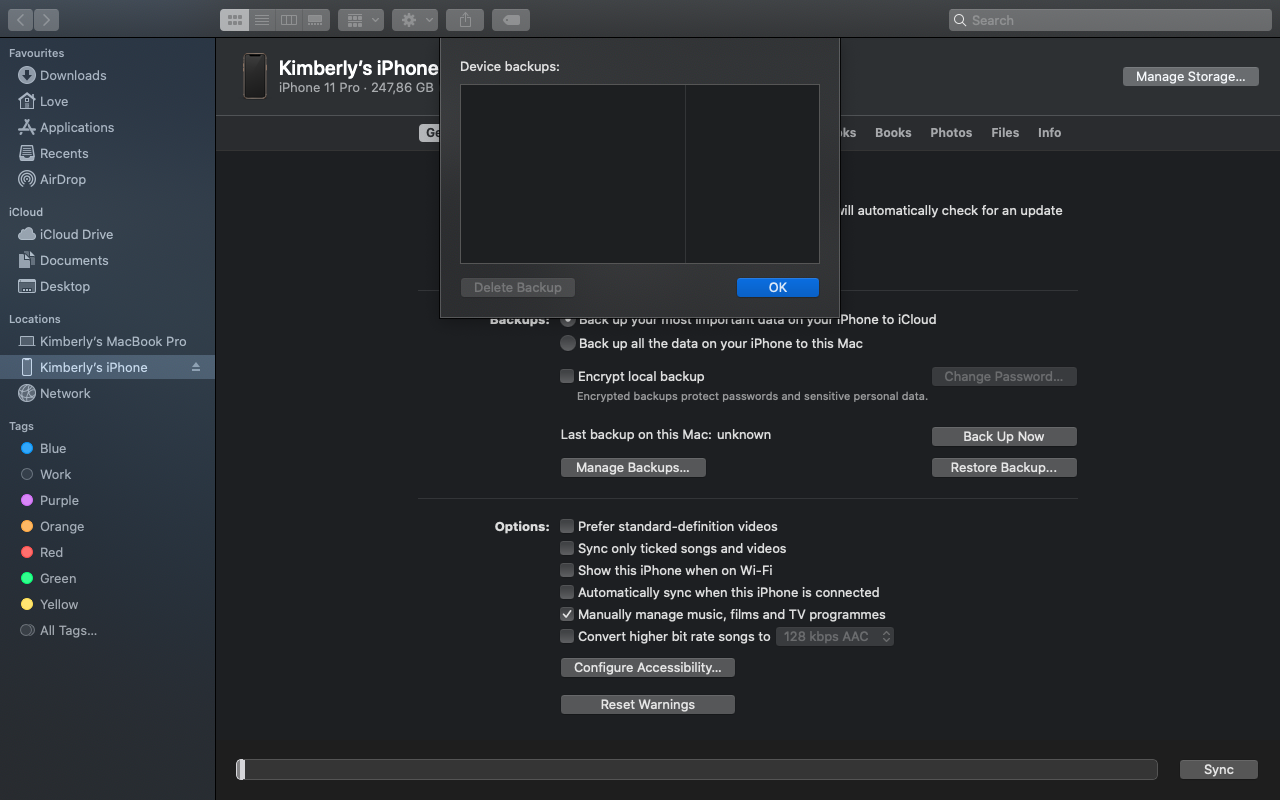 I backed up my Iphone 11 through Music. I reset my Iphone and when i needed the backup it was gone. Music could not locate any backup.