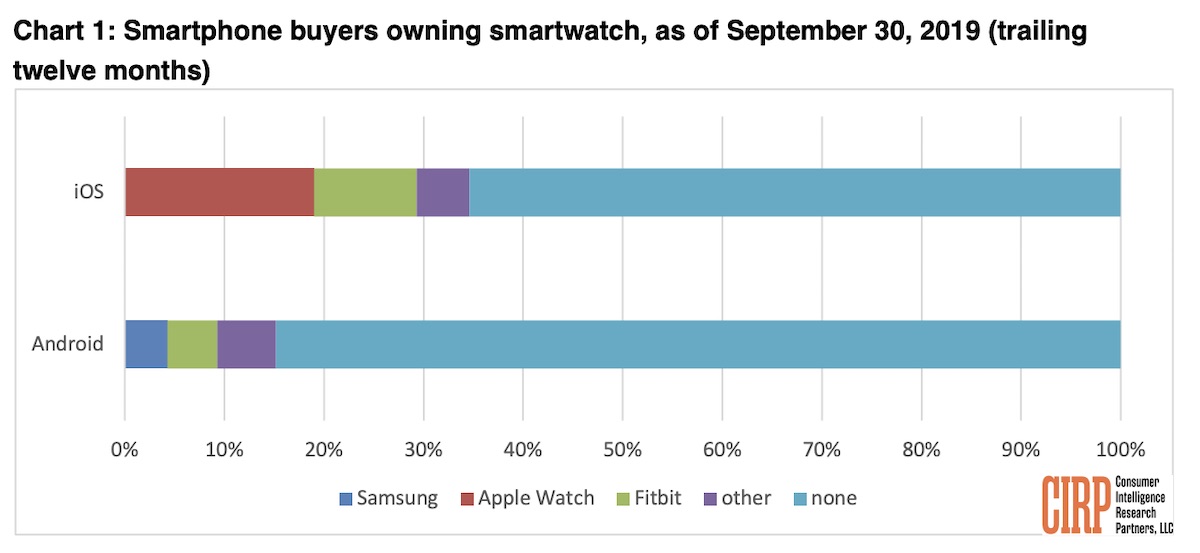 Google just announced its plan to acquire Fitbit for $2.1 billion, planning to release a new "Made by Google" wearables category that includes Fitbit devices."Among the relatively small share of all smartphone buyers that have any kind of smartwatch, iPhone buyers are twice as likely to own one than Android buyers," said Josh Lowitz, CIRP Partner and Co-Founder.