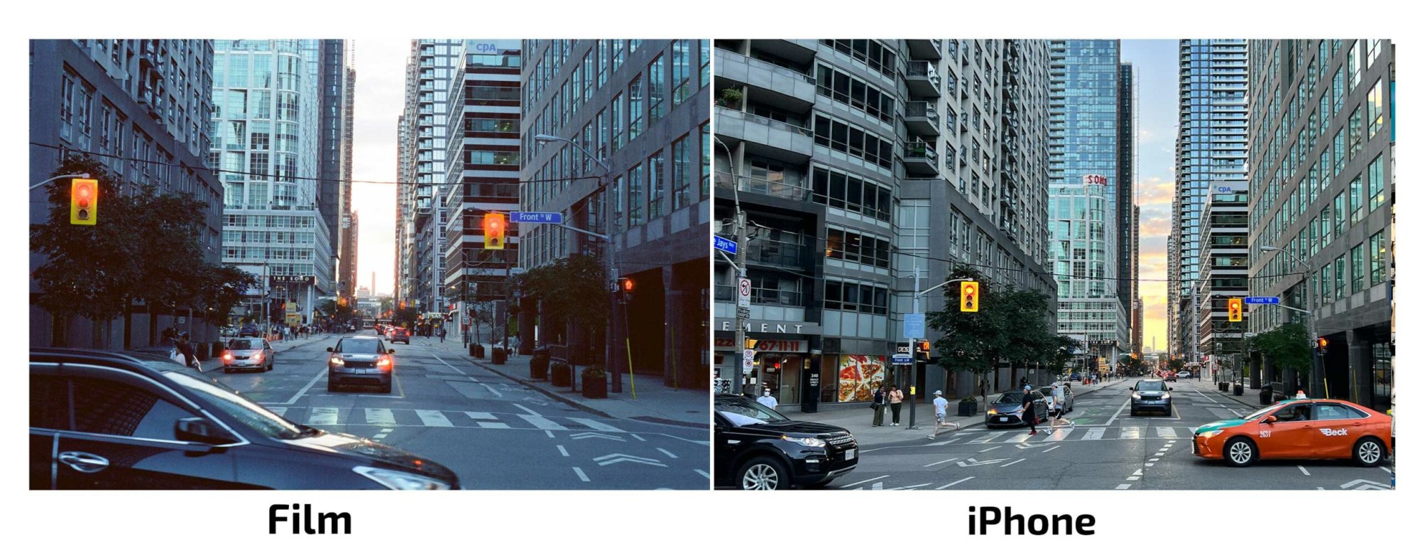 Here are few examples of how a film camera compares to one of the latest iPhones (sauce):