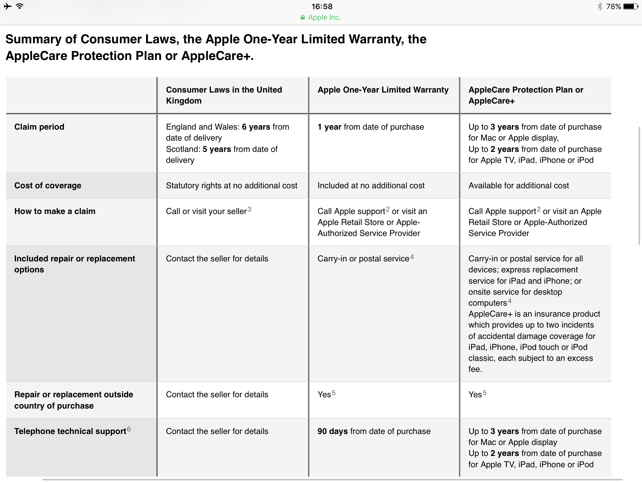 If your device failed after (as an example) 13 months and Apple refused to repair/replace it, then in the UK, we have the legal right to make a **claim** for up to **SIX years**.