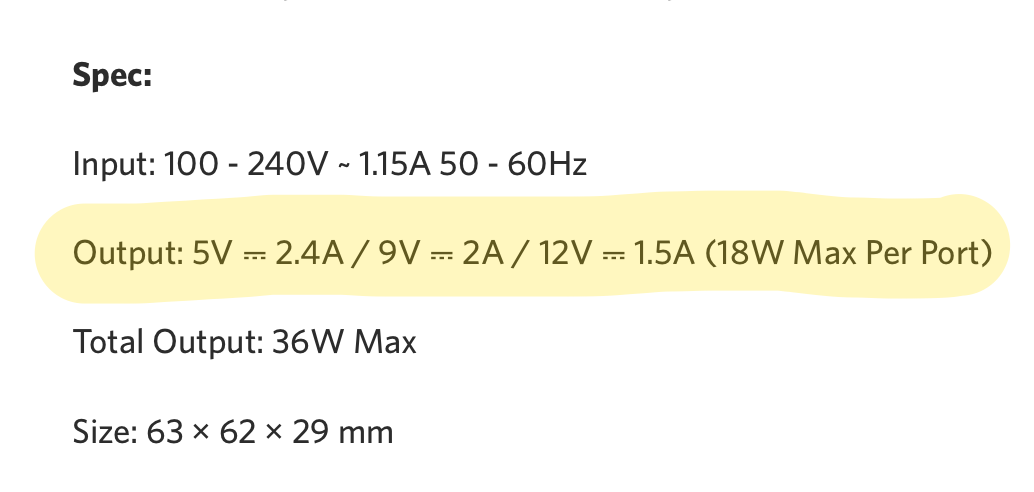 And there may be some 3rd-party adapters that put out the full 20W as 9V-2.22A, such as: