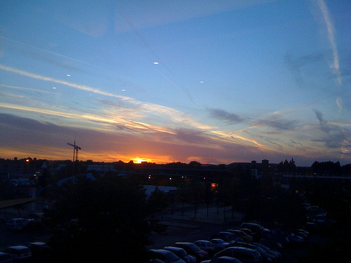 I thought I'd share this one with the group: I was in a local shopping mall a while back and I took a picture of the nice sunset on my iPhone 3G, it wasn't until I got home and looked at the picture again I saw the 6 lights in the sky flying in formation.