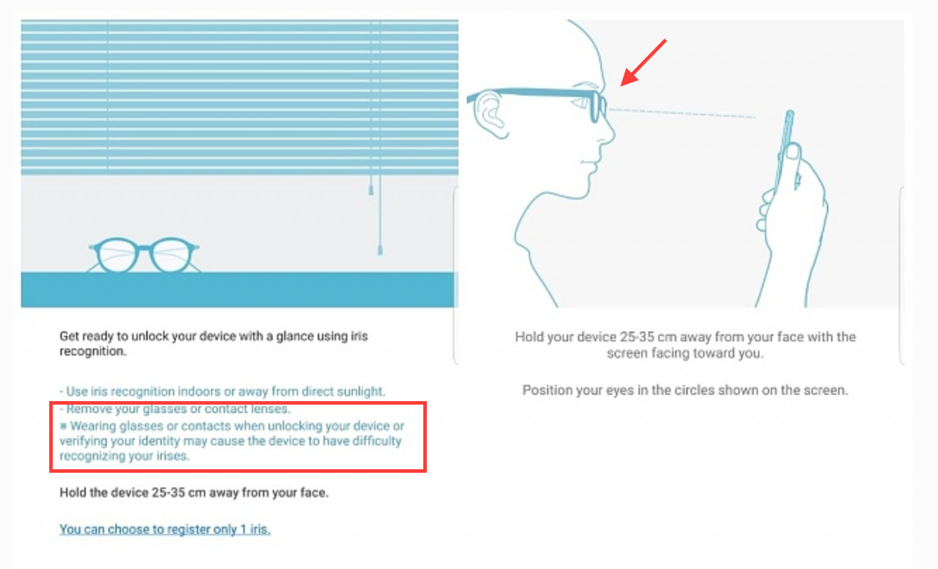 With the Note 7 iris scanner, you have to remove your glasses / contacts. Apple would never come out with this. As I said, Samsung should have waited a year or two, but they always wants to be first with their half bake products. Samsung lets just act like a lot of people in the world don't wear glasses / contacts. How this made it into the FINAL product...is beyond me.