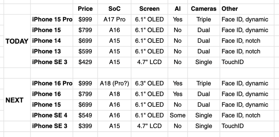 If Mark is right, I can actually see Apple doing it. First, though, you accidentally mixed up the pricing. Obviously the iPhone 16 won't be the same price as the iPhone 15.