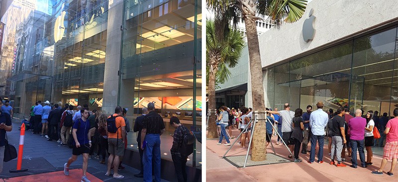 iPhone SE lines in Sydney, left, and Miami, right (Images: Nick Sas/Julio Perera)
