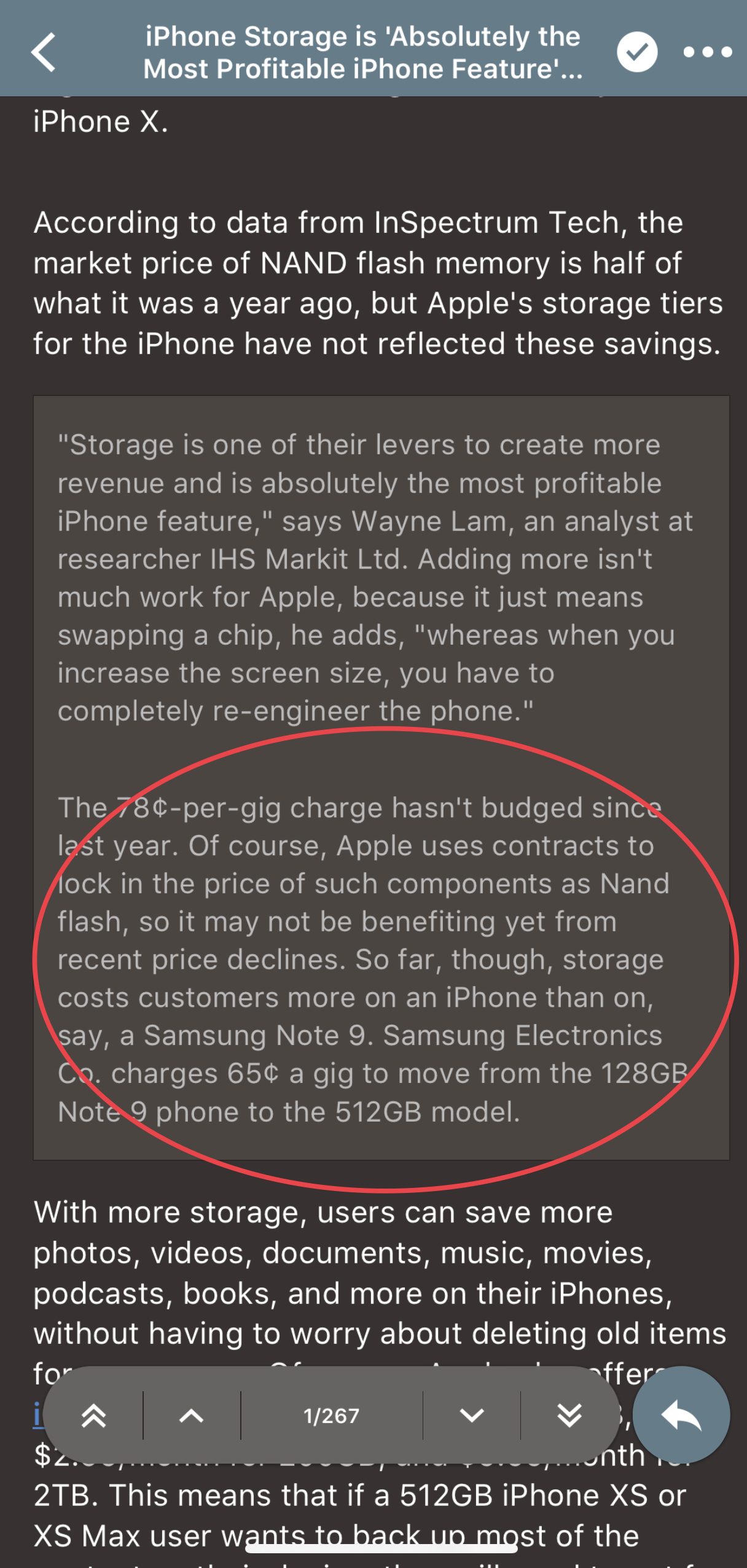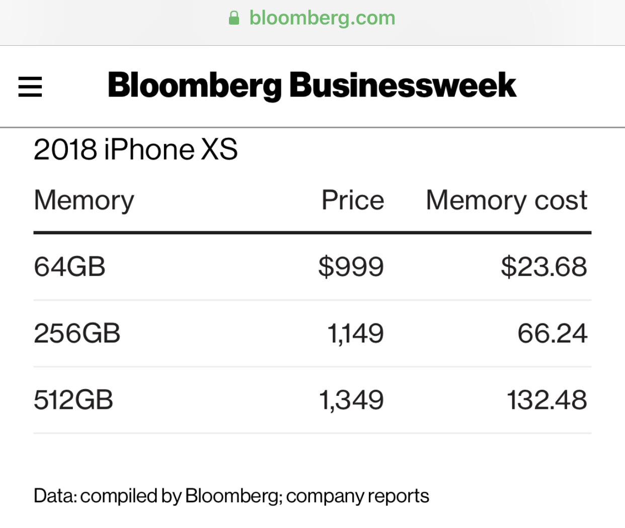 The additional material cost from 256GB to 512GB is, by your posted figures, $66.24. The additional selling price for this is $200. The mark up up on this additional storage is actually $133.76 or approx x3.You obviously don’t know anything about storage or even read/understood the article you keep posting as proof.