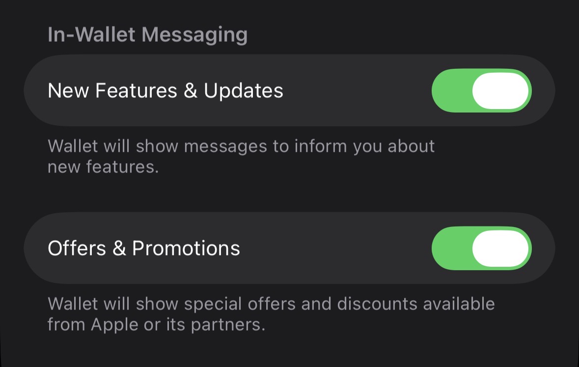 By the way, there are two settings to turn off these notifications in Wallet:
