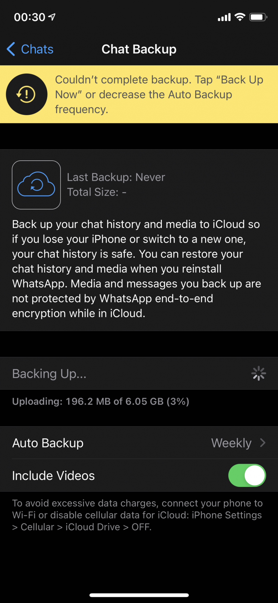 I have iPhone X 64gb on latest iOS and updated WhatsApp. This been happening for months. Also 1 last unrelated thing, how in world app used by 2 billion people and it can’t storage its backup at one common place, if you switch to iOS or Android and you can’t back up, what’s years is this and how this is allowed.