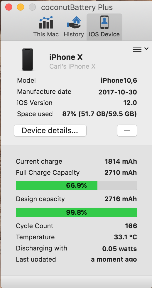 Mines still have 100% capacity with cocunut showing 2800mAh, also various battery apps, compared to designed 2716mAh since got it on launch date.