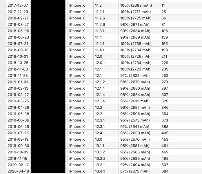 Our iPhone X has excellent battery life. I had used it for the first two years and now my daughter is using it - which you can tell by increased number of cycles![]()