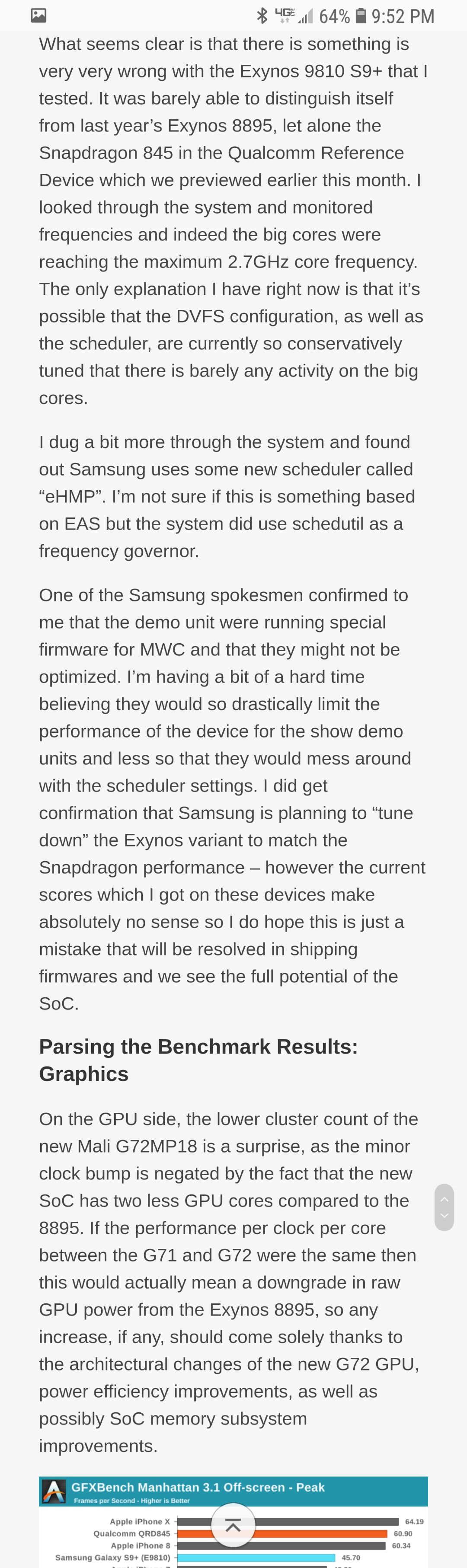 Nonetheless, they allowed a well-known publication enough time to run a series of tests. They didn't just whip through Geekbench (which only takes a minute). It would have taken them some time to run all the tests they did. Time that was allotted to them by Samsung. When unfinished demo units are on display there's usually restrictions (for example, when people first got to look at HomePod they weren't allowed to try Siri or other functions).