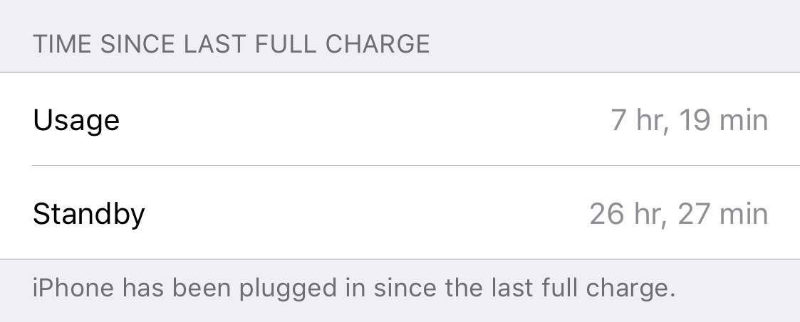 If I cared / wanted to argue about it, I could also play devil’s advocate and claim that your screenshot somewhat disingenuous as well. IOS 8 (which the 6+ shipped with) had the ability to show you applications that were using battery life, which is cropped out of your image. You also cropped out the section that would have shown “iPhone has been plugged in since the last full charge” as well.