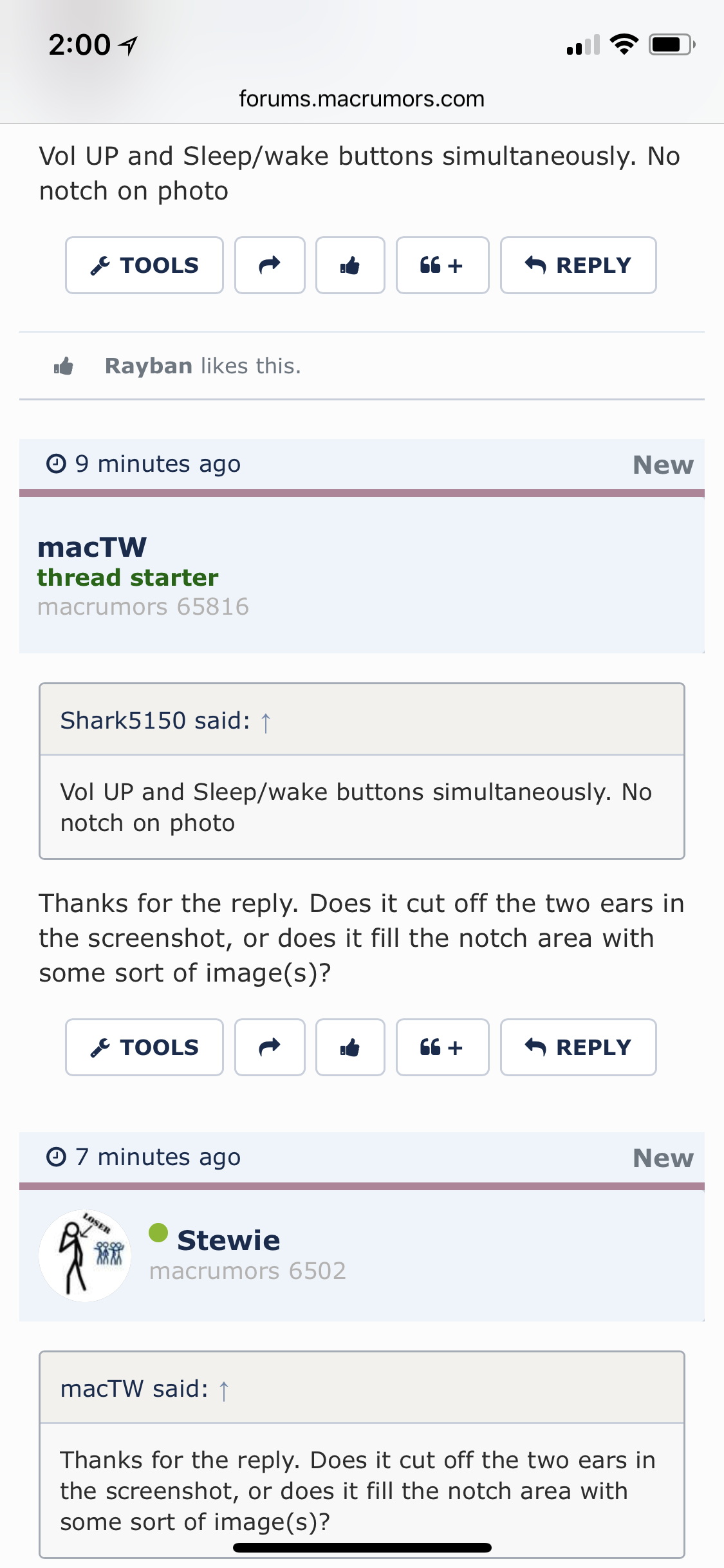 Thanks for the reply. Does it cut off the two ears in the screenshot, or does it fill the notch area with some sort of image(s)?Vol UP and Sleep/wake buttons simultaneously. No notch on photo
