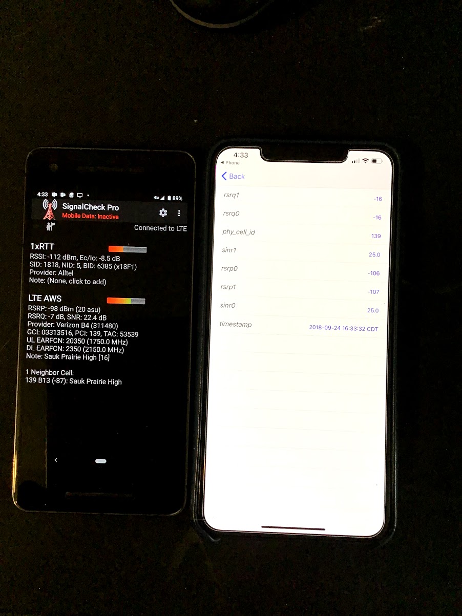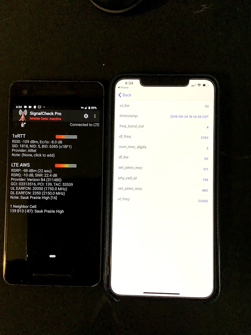 Way too blurry to read.Okay guys. I provided examples between the Pixel 2 and the Max on the main forum before - but without photos. Here are two. One of them shows the RSRP signal values and PCI. The other shows the LTE band from Field test mode. Both are on Verizon AWS (B4). Both on PCI 139 from the same cell site. Obviously this doesn't compare them between previous iPhones... But I am definitely seeing a signal quality decrease and more drops to 3G because of it.