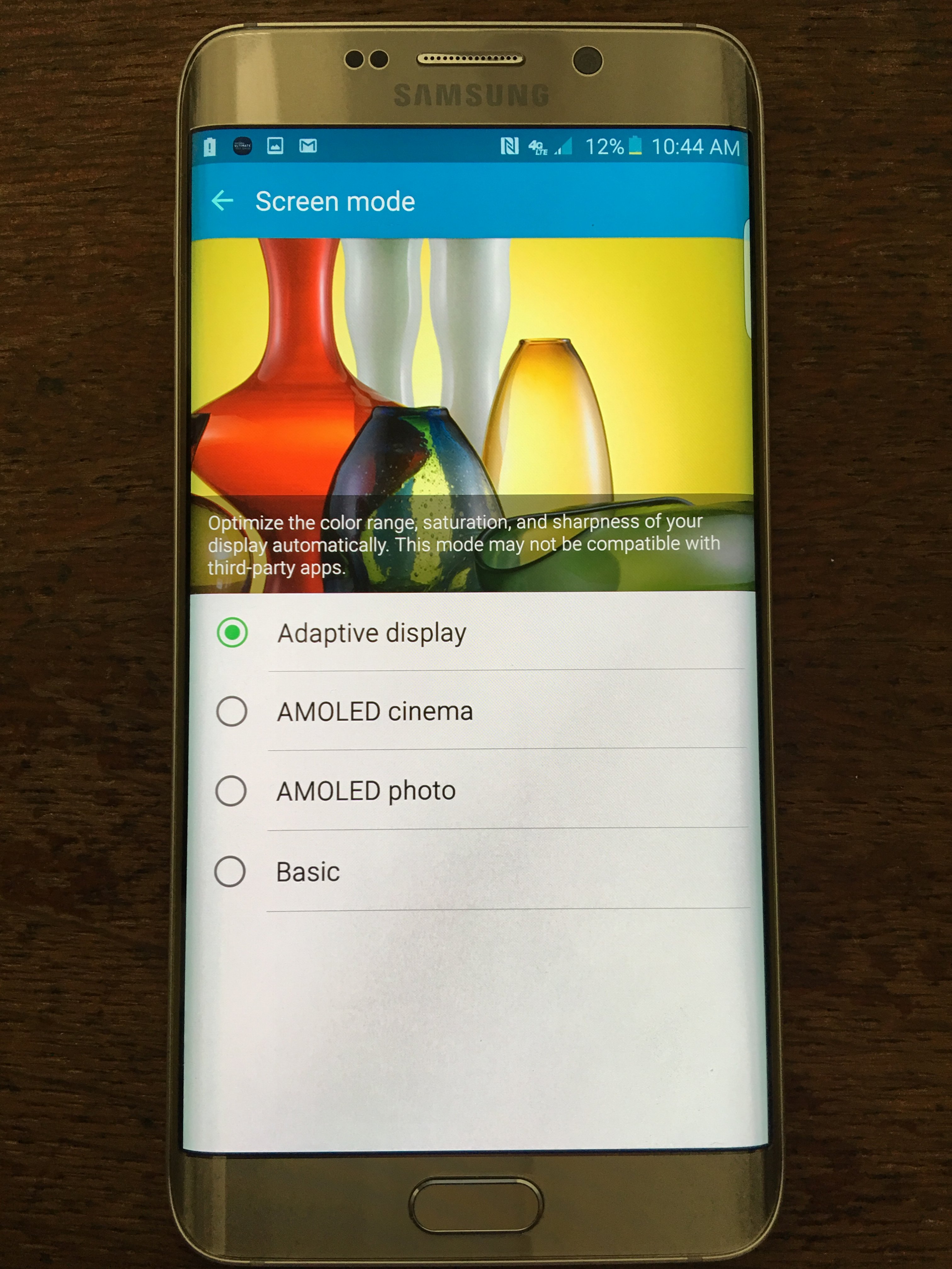 Adaptive - The color saturation is maxed out. Looks good but it also looks unnatural.