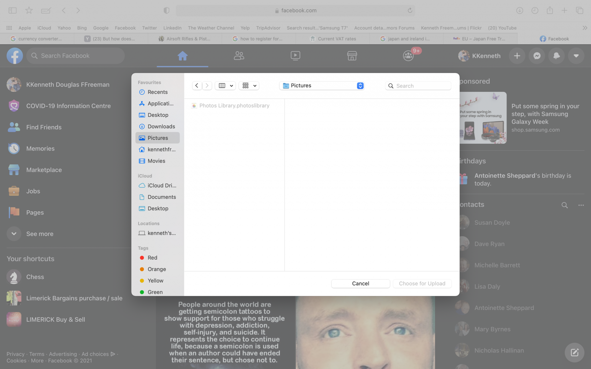 hi I bought the 13inch MacBook Pro and since iv had it I can't share any photos to FB or send them by email ,. any help ,. in sharing iv pressed the media button and a green dot went on now it says its on but its gray dot and the liberty is faded and I can't access it