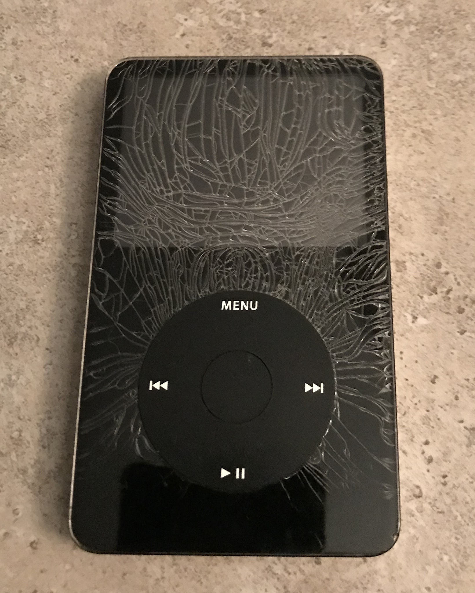 iPod A1136 by tickm0, on FlickrThe screen isn't cracked, the face film has delaminated or wrinkled, perhaps from heat. The (trusted) guy who gave it to me says he didn't do anything stupid with it, it just happened.