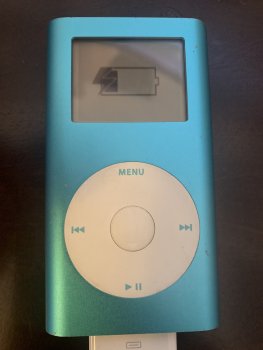 I purchased an iPod Mini 2nd Gen to upgrade with a flash solution from iFlash.xyz. I have replaced the Microdrive with the iFlash board and the original battery (which was totally dead) with a new one from iFixit. Unfortunately, I seem to be having an issue. With the Microdrive or the iFlash board, plugging in the iPod with the new battery leads to a boot loop of sorts where the iPod goes from Apple logo to the "Sad iPod" screen, which is expected because I formatted both the Microdrive and the SD card to see if anything would change, to a screen with a 1/4 filled up battery and a lightning bolt, indicating charging of a dangerously low battery.