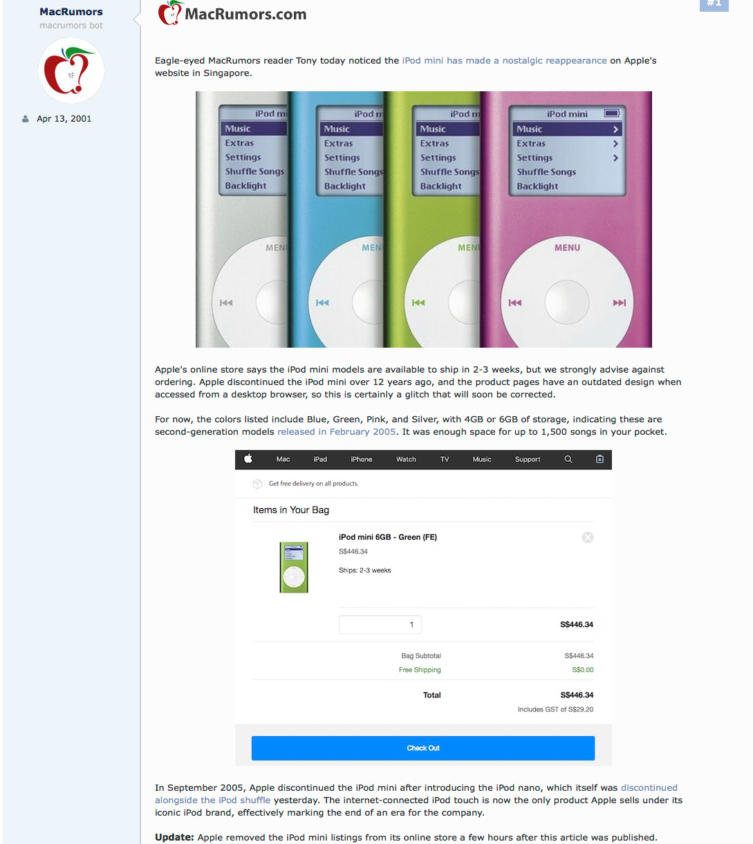 Not according to the article:Touché. But the actual page looked so similar to the above that i didn't bother to screenshot it. There were no "options", it was literally just that specific green 6GB ipod mini that was available.