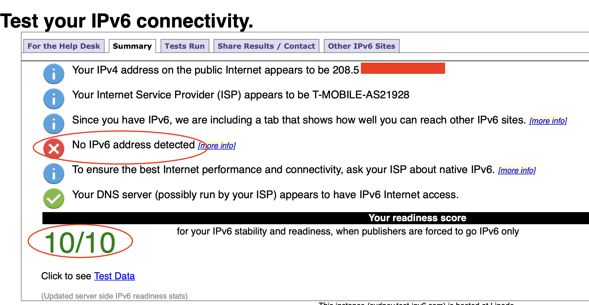 I have ipv6 through the ISP. Turns out its Adguard stuffing things up.Check with your ISP, on their website there should be a network settings page, which might list the ipV6 settings, or advise they don't use the service. I get the same response, and my ISP doesn't support it, as the carrier doesn't