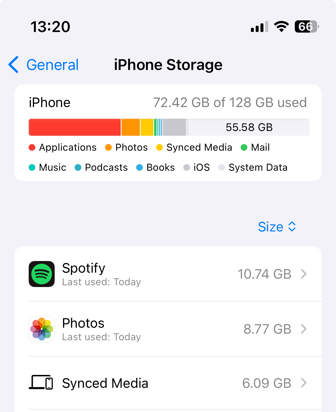 And that's with Photos and Spotify taking up the lion's share of the storage. The 400GB of photos is on my Mac and I rely on my 2TB iCloud and Google Drive to take care of storing things off device.