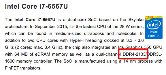 So we get ram speed boost on the new MBP's. The speed jump BTW is 33% as we go from 1600 Mhz to 2133 Mhz. I'll take that!![]()