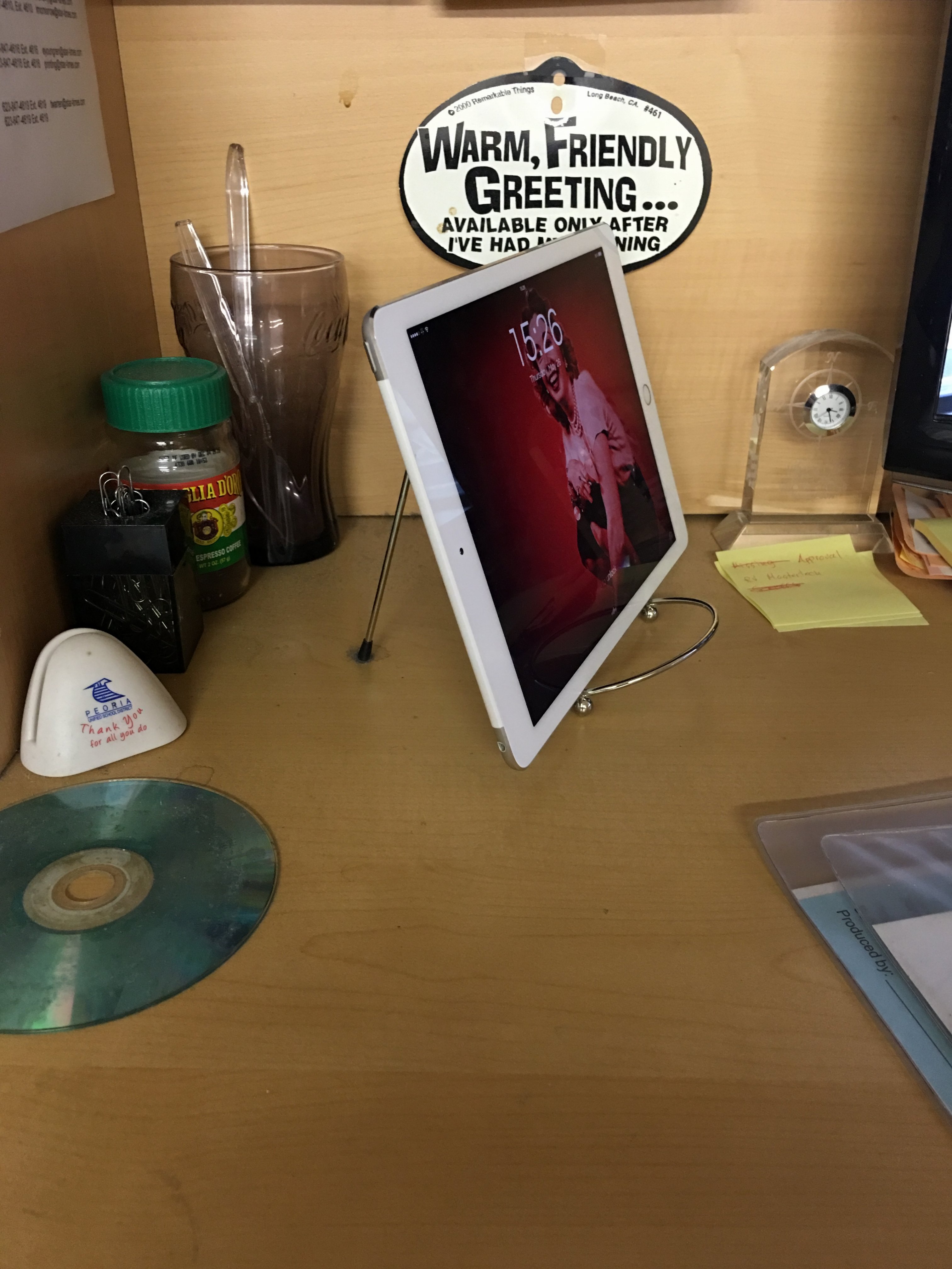Oh! Same thing with my iPad, only this is a plate stand. I have another one at home on my computer desk and that's where my iPad is plugged in and left when at home and at bedtime.